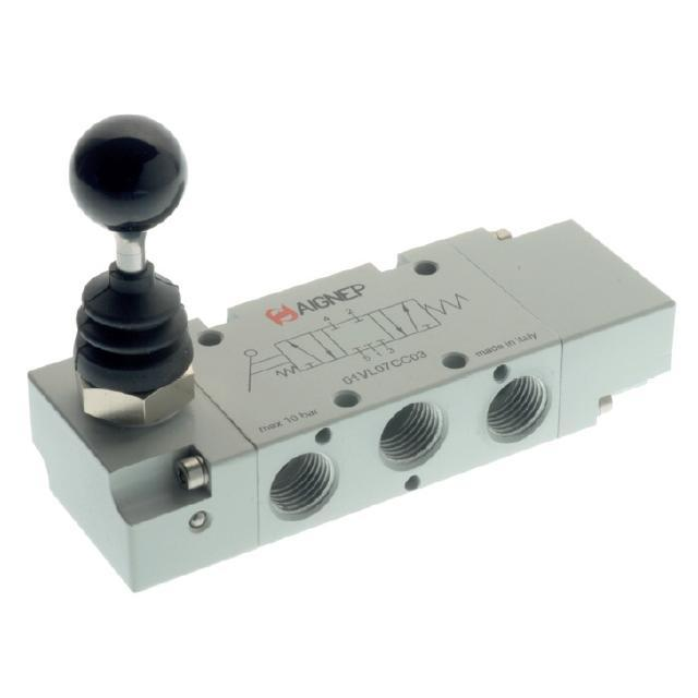 Slouží k ovládání stlačeného vzduchu pneumatických válců nebo ovládání jiných pneumatických mechanismů. 5/3 - pěticestný/třípolohový ventil, jednostranný s vratnou pružinou (monostabilní).G 1/8 - 740 NI/min, G 1/4 - 1200 NI/min.CC-středová poloha uzevřená, OC-středová poloha otevřená, PC-středová poloha pod tlakem.