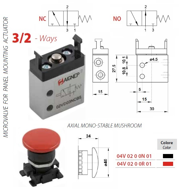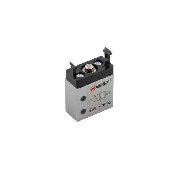 Varianty02VD03NCB5; Provozní tlak (bar) 2-10, Vnitřní závit M5, Série 02VD, Hmotnost (kg) 0,042, Ovládání Zdvihátko, Kóta A 30, Provedení NC - normálně zavřen