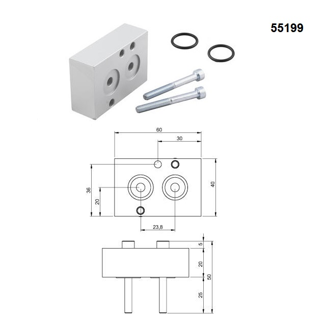 Varianty08V0100000; Tloušťka (mm) 20, Hmotnost (kg) 0,145, Ovládání 4/2 - zavřený, Kóta B 40, Kóta A 60