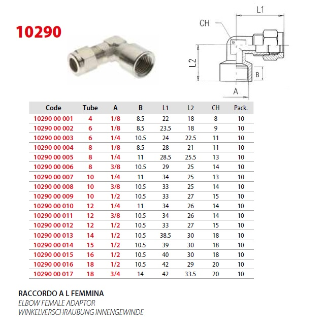 1029000008; Podtlak (kPa) 99, Provozní tlak (bar) 178,1, Vnitřní závit G 3/8", Trubka (mm) *D10, Hmotnost (kg) 0,059, Šestihran 14