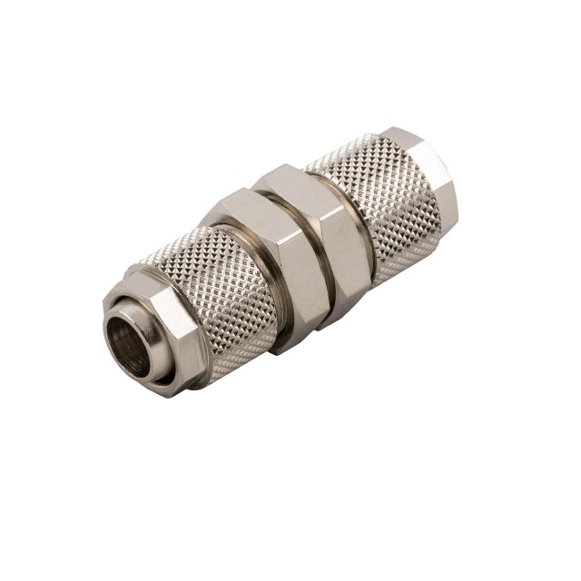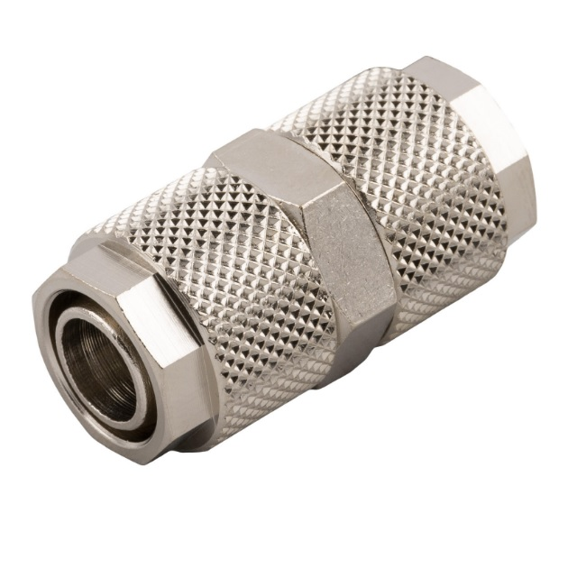 Kovové šroubení, typ PUSH-ON. Spolehlivé spojení hadic přesných rozměrů pro aplikace s nároky na mechanické namáhání.Hadice se montuje po vyšroubování převlečné matice nasazením na nátrubek a zpětným utažením.