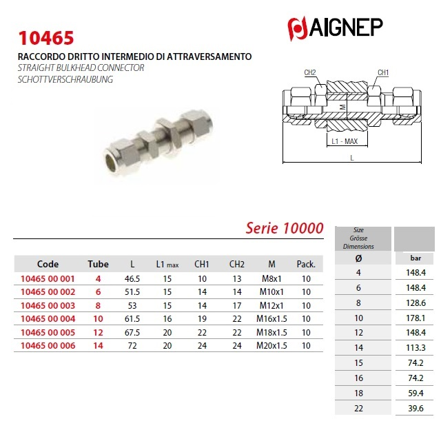 1046500005; Provozní tlak (bar) 148,4, Připoj. závit M18x1,5, Hmotnost (kg) 0,12, Šestihran 22/22, Určeno na hadici [mm] D12