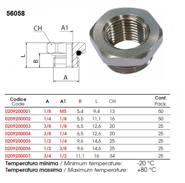 Varianty209200012; Provozní tlak (bar) 50, Vnitřní závit M5, Vnější závit M7, Hmotnost (kg) 0,005, Šestihran 13