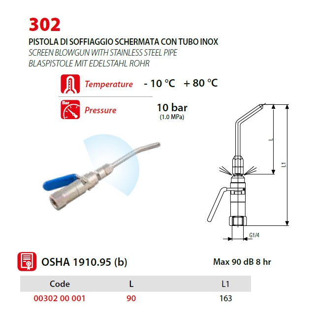 302- Ofukovací pistole 10 bar s bezpeč. SS trubkou a clonou 88 dBA/6 Bar