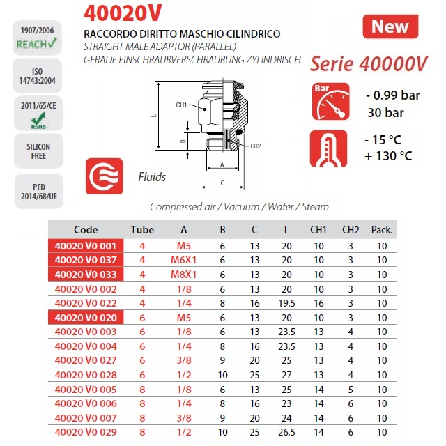 Niklovaná koncovka pro kapaliny a páru 2011/65/CE, Viton těsnění