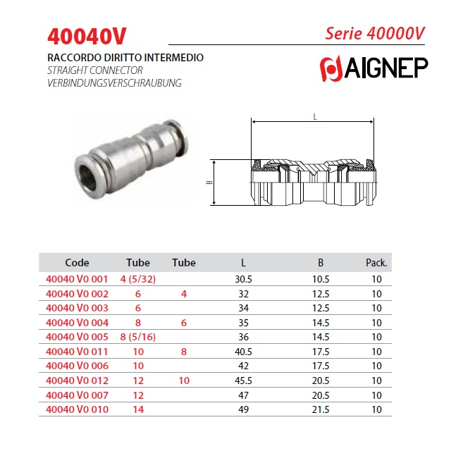 40040V0005; Podtlak (kPa) 99, Provozní tlak (bar) 30, Hmotnost (kg) 0,016, Určeno na hadici [mm] 8 - 8