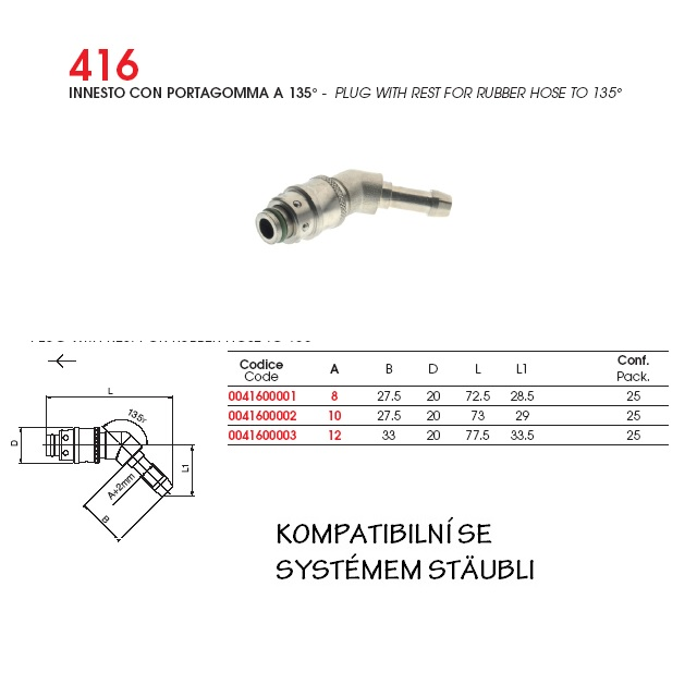 Varianty41600001; Provozní tlak (bar) 15, DN (mm) 8, Hmotnost (kg) 0,069, Určeno na hadici [mm] 8 mm