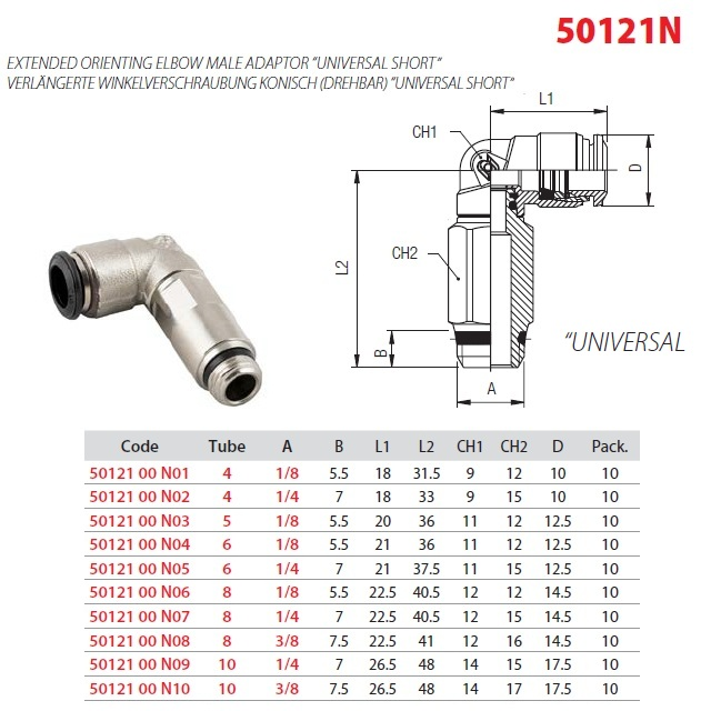 50121N - PNEUMATICKÉ OTOČNÉ ÚHLOVÉ ŠROUBENÍ 90°