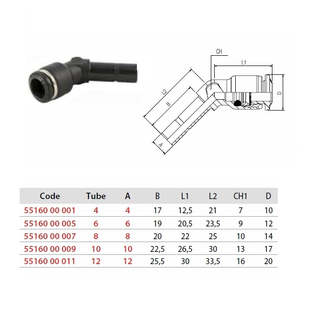 Spojka s násadcem umožňuje rychlé prodloužení a vyústění rychlospojky do úhlu 45°.Těleso - technopolymer, mosaz galvanicky niklovaná.Nerezové kleštiny, plastový bezpečnostní kroužek.NBR profilový kroužek NBR 70.