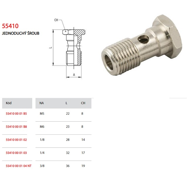 Základní druh průtokového šroubu (jednoduchý). Jednoduchý systém spojování PA, PU a PE hadic pro automatizaci a rozvody vzduchu.Poniklované mosazné šroubení pro závitová spojení pro středo a nízkotlaké aplikace.Těleso - mosaz galvanicky niklovaná. Pro plastová banja (55510, 55500, 55520 apod.), nepotřebujete žádné těsnění.