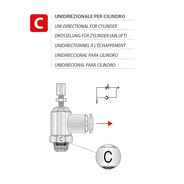 Jednosměrný ventil pro škrcení na výstupu, regulace šroubem