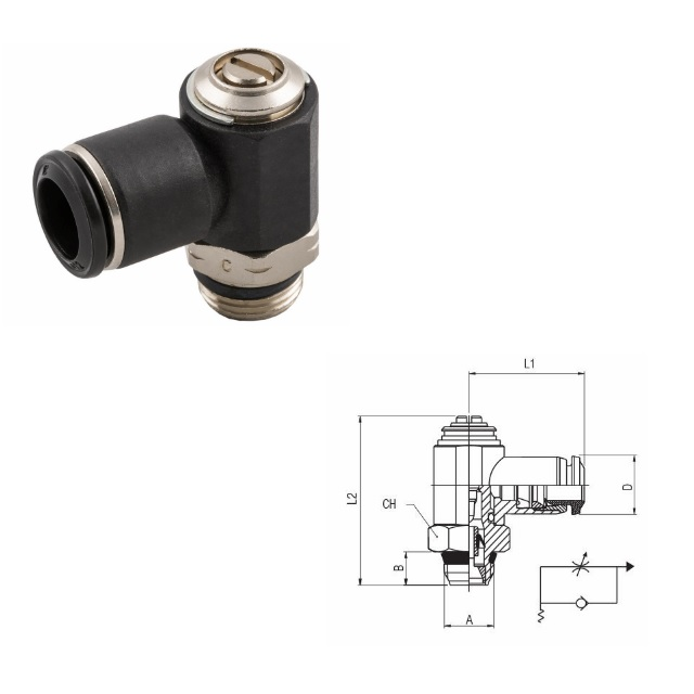 5590000008; Podtlak (kPa) 99, Provozní tlak (bar) 10, Vnější závit R1/8", Hmotnost (kg) 0,018, Šestihran 14, Určeno na hadici [mm] *D6