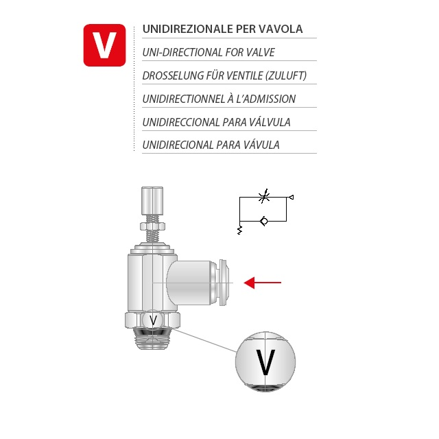 Funkce: omezení rychlosti vstupního tlakového vzduchu směrem od hadice do válce.Připojovací závit R Whitworth - kuželový krátký, nebo M5x0,8.Ovládání lze provádět ručně nebo klíčem pomocí šestihranu, který je uveden níže v tabulce.