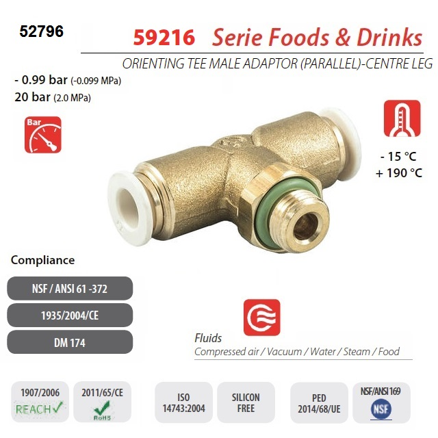 Plno průtokové spojky se aplikují s hadičkami pro: kávovary, automatové nápoje, velký sortiment v potravinářství apod.Použití v průmyslu: Farmaceutický, laboratoře, v lékařství, nemocnicích apod.