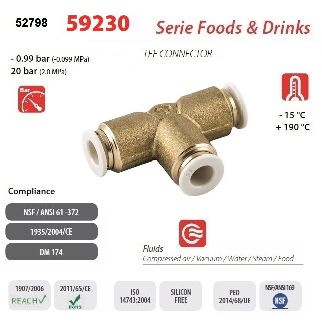 Plnoprůtokové spojky se aplikují s hadičkami pro: kávovary, automatové nápoje, velký sortiment v potravinářství apod.Použití v průmyslu: Farmaceutický, laboratoře, v lékařství, nemocnicích apod.* Vnější průměry kalibrovaných hadic (PA, PE, PU).