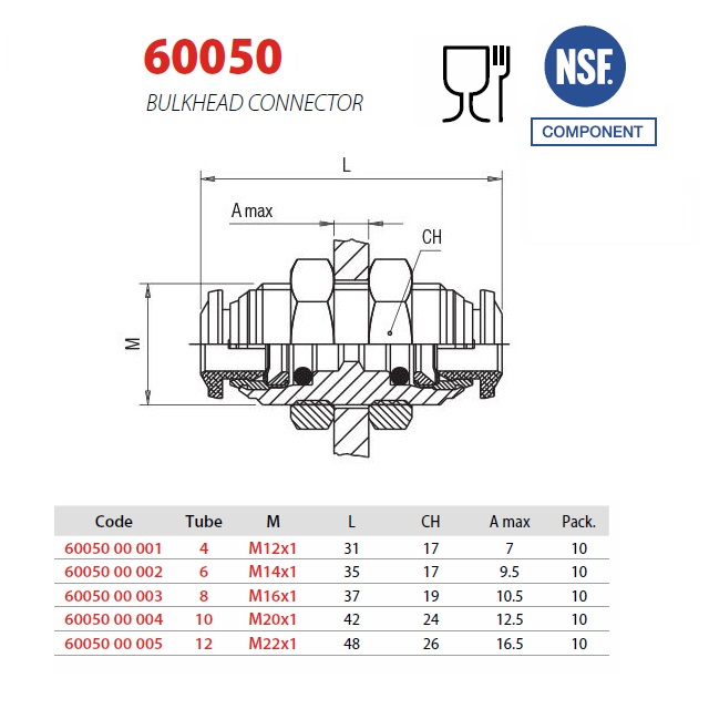 60000 série je plně z nerezové oceli AISI 316L. Rychlé připojení a odpojení. Koncovka pro korozivní kapaliny používané v agresivním prostředí.Je ideální pro přímý kontakt s potravinami a tekutinami. Lze použít i ve slaném prostředí, na strojích, které vyžadují časté mytí s agresivními čisticími prostředky.Vhodný pro zemědělský, hornický, chemický, petrochemický, farmaceutický odvětví. Kóta D* - označuje vnější průměr kalibrované hadice (plastové trubky).