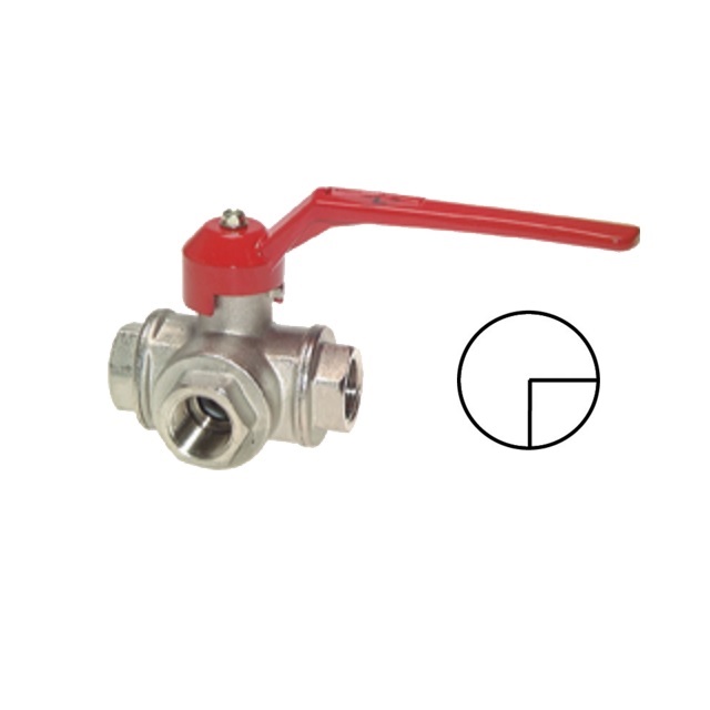 3- cestný kohout pro rozvod kapalin, vzduchu, olejů, slabých roztoků kyselin nebo vakua. Uzavírání kohoutů je ve tvaru L, viz symbol u obrázku. Kouhouty nejsou vhodné pro naftu!