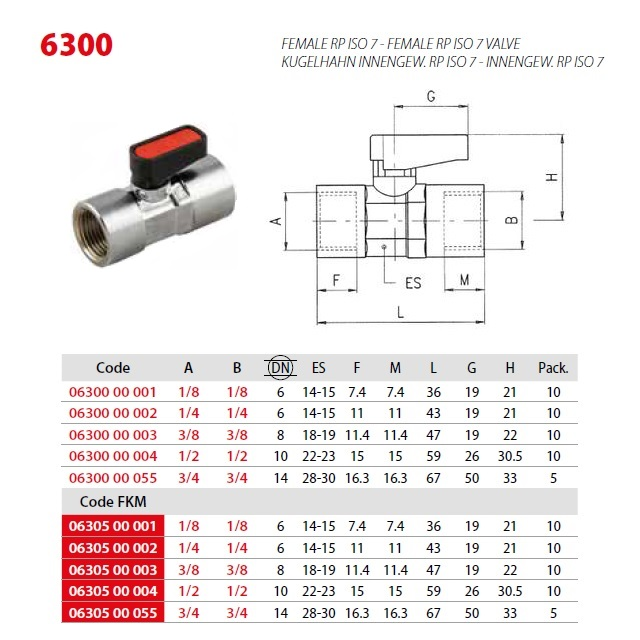630000002; Celková délka (mm) 43, Provozní tlak (bar) 20, Vnitřní závit G 1/4", DN (mm) 6, Hmotnost (kg) 0,05, Šestihran 14-15