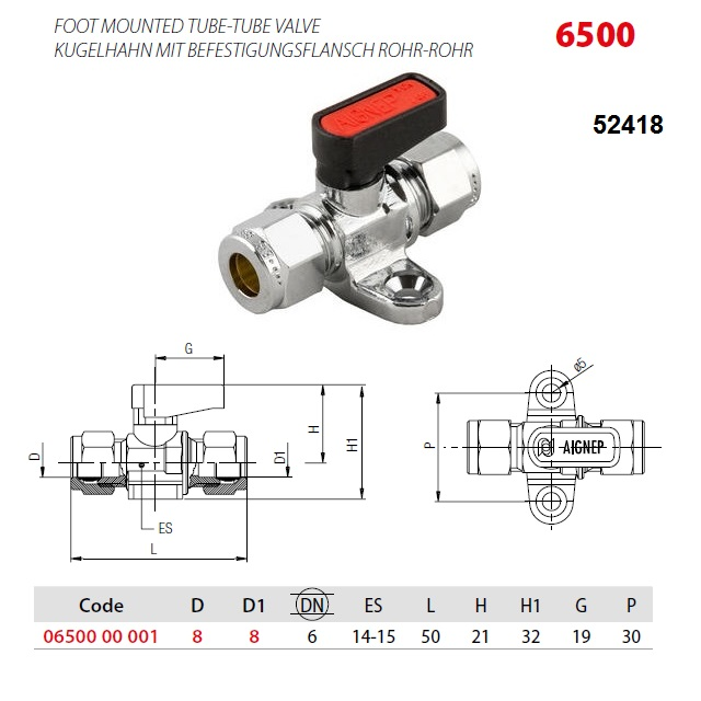650000001; Podtlak (kPa) 99, Provozní tlak (bar) 20, DN (mm) 6, D.* (mm) D=8, Hmotnost (kg) 0,067, Určeno na hadici [mm] 8 - 8