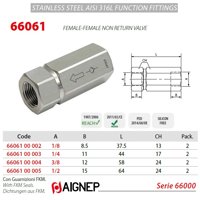 Zpětný ventil umožňuje průtok média pouze jedním směrem.Ventil lze použít díky použitým materiálům a parametrům všeobecně pro veškerý průmysl.Hlavní oblast použití: potravinářský, farmaceutický průmysl apod.