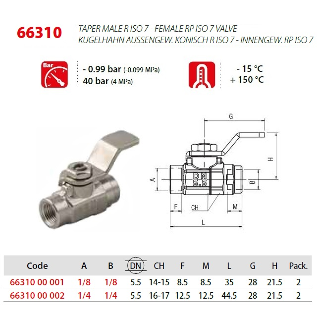 Varianty6631000001; Podtlak (kPa) 99, Provozní tlak (bar) 40, Vnitřní závit 1/8", Vnější závit 1/8", Hmotnost (kg) 0,038, Šestihran 14/15