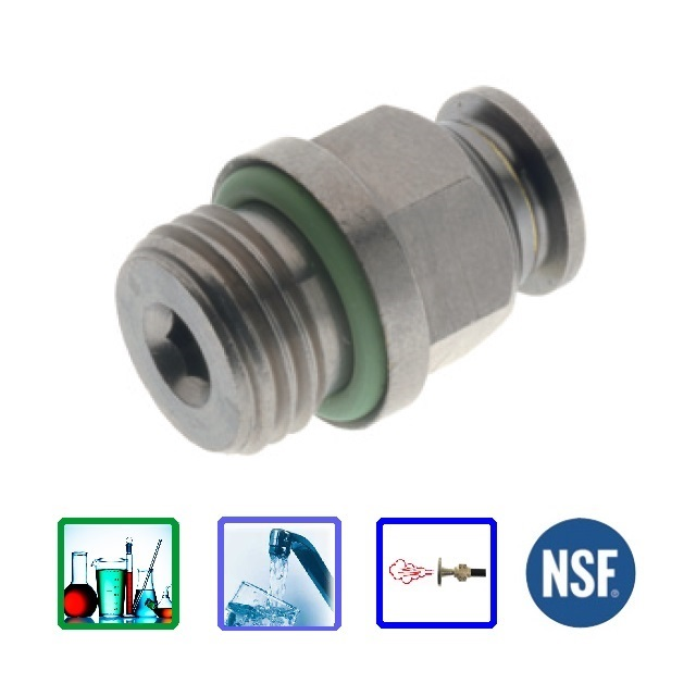 Jde o Push-In koncovku pro potravinářské a farmaceutické účely. Použití k dopravě páry, pitné vody, kávovary, potravinářských kapalin nebo sání stupně vakua.