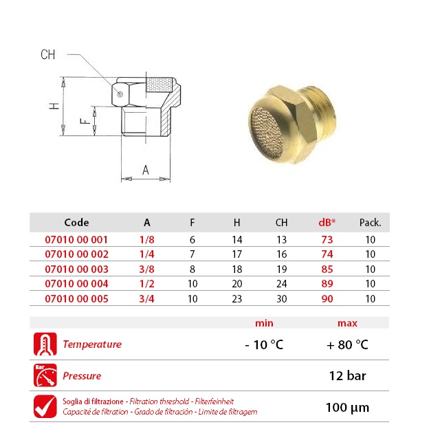 701000001; Provozní tlak (bar) 12, Vnější závit 1/8", Hmotnost (kg) 0,006, Šestihran 13