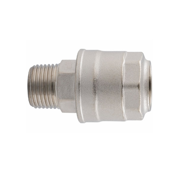 Varianty9001000001; Celková délka (mm) 56, Podtlak (kPa) 99, Provozní tlak (bar) 16, Vnější závit 1/2", DN (mm) 20, Hmotnost (kg) 0,2, Šestihran 22/30, Určeno na hadici [mm] trubka D=20