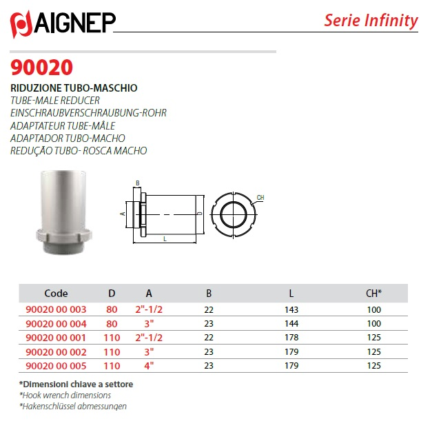 Přechodová redukce Infinity potrubí. Řeší přechod jiného DN potrubí pomocí vnějšího závitu BSPP.