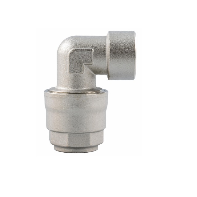 Spojka úhlová L 90°stupňů, typ PUSH-IN.Tělo a matice z poniklované mosazi, břit z nerezové oceli, bezpečnostní kroužek z technopolymeru, těsnění NBR.Rychlospojka pro systém rozvodu vzduchu, médium - vzduch a vakuum.