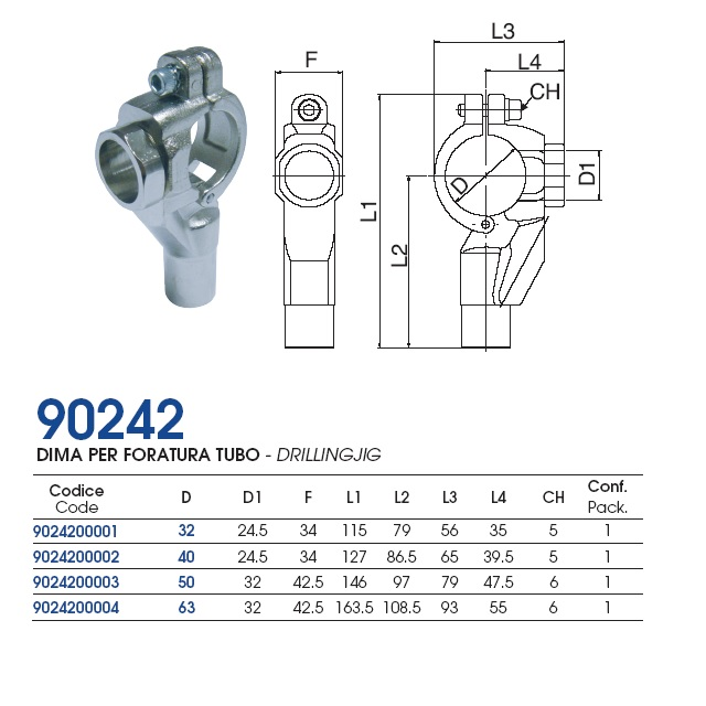 Vodídko 90242 a Fréza 90241 spolu vytvářejí kompletní nástroj pro řezání bočního otvoru do hliníkových trubek pro příložkovou spojku 90240 (6), (7).