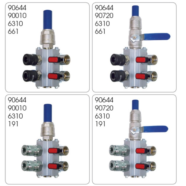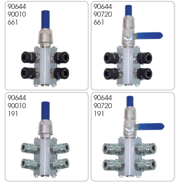 Jde o rozvaděč s vnitřními G závity, nejčastěji zapojen s přívodem vzduchu v horní části od hliníkového potrubí "Infinity". Na zeď či panel se uchycuje pomocí obdélníkové ocelové desky se 4-mi otvory pro šrouby.Hliníková kostka je vůči zdi axiálně seřiditelná ve vzdálenosti od 35 mm do 60 mm (max.), po uchycení potrubí se zafixuje maticemi (axiálně = ve vodorovné poloze).