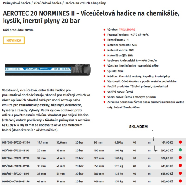 Varianty006/013-SV020-11196; Provozní tlak (bar) 20, Poloměr ohybu (mm) 18, Vnější průměr (mm) 13, Vnitřní průměr (mm) 6, Hmotnost (kg) 0,16