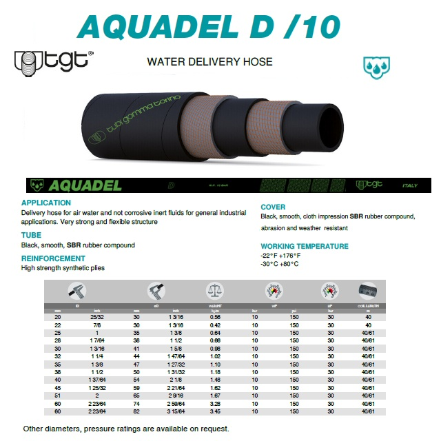 Tlaková hadice pro vzduch, vodu a nekorozivní inertní kapaliny pro všeobecné průmyslové aplikace.Velmi pevná a flexibilní konstrukce.Dodací podmínky: Hadice je k dispozici pouze v balení po 40 nebo 61 metrech. Dodací lhůta činí přibližně 2–3 týdny.Uvedené parametry v tabulce platí při teplotě 20°C.
