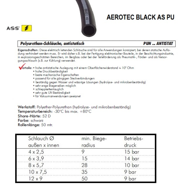 Tyto elektricky vodivé speciální hadice jsou koncipovány pro všechny aplikace, u kterých je třeba předejít vzniku statického náboje. Používají se například při výrobě elektronických součástí, v papírenském průmyslu, v hornictví apod.Hadice byly testovány a jsou v souladu se směrnicí ATEX 94/9/ES. Jsou také vhodné pro podtlakové aplikace.