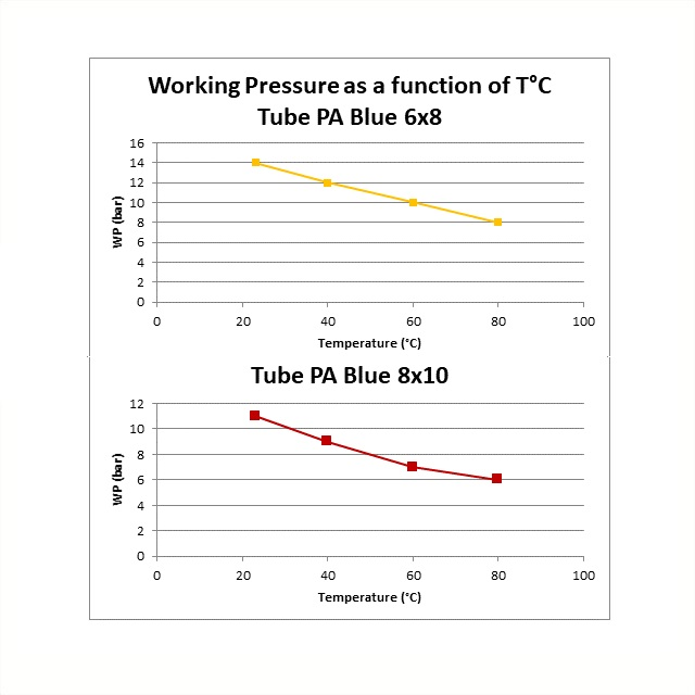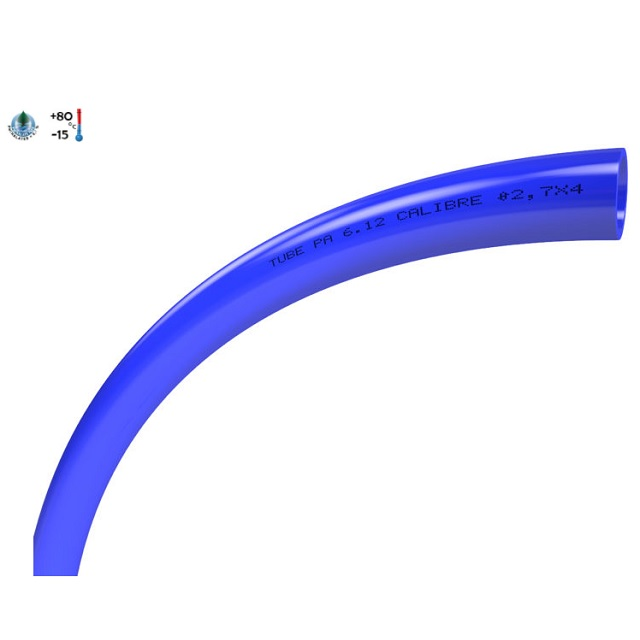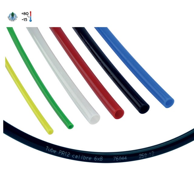 Kalibrovaná polyamidová hadice pro dopravu minerálních olejů, motorové nafty a vzduchu se stopami nemrznoucích směsí.PA trubky se používají pro vzduchové brzdy a jako odvzdušňovací, hydraulická a palivová potrubí motorových vozidel. Na přání zákazníka dodáváme k hadicím speciální spojky a rychlospojky.U hadice je přesně kalibrován vnější průměr, který je nejdůležitější při objednání hadice. Tolerance přesnosti vnějšího rozměru je +-0,1 mm. Parametry uvedené v tabulce jsou vztaženy k teplotě 20°C. Vyšší teplota má za následek snížení provozního tlaku.