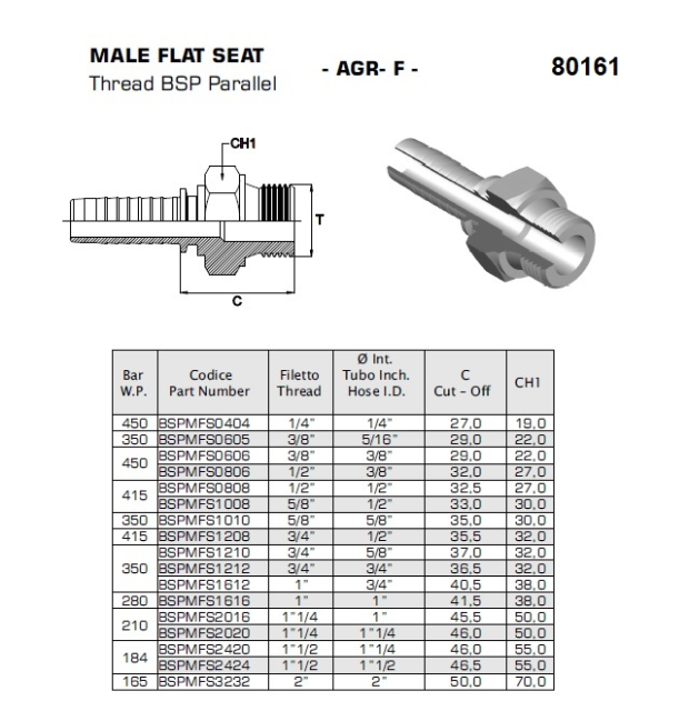 MGSP0808-SS; Provozní tlak (bar) 415, Vnější závit G 1/2", Hmotnost (kg) 0,054, Velikost [modul] (-08), Šestihran 27, Hadice d/D 1/2"
