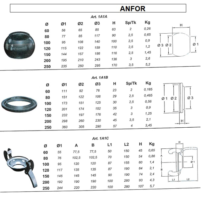 ANFOR jsou koncovky ze systému ITAL, jsou oproti Perrotu robustnějšího provedení s jinými rozměry. Jde o rychlospojkový systém fungujcí na principu kardanového spoje, mají delší životnost a snesou vysokou mechanickou zátěž. ANFOR mají u 3 pákových úchytů provozní tlaky ještě řádové o 35% vyšší, např. DN 100 = 19 bar, DN 300= 8 bar. Nejčastější použití v zemědělství, hasící technice, vodohospodářství, při práci s odpady a kaly, přepravě sypkých hmot.Materiály: z pozinkované oceli, černé oceli (ke sváření) nebo nerezu.