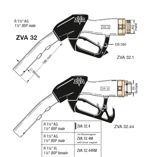 Automatická výdejní pistole ZVA 32.1 pro tankování lokomotiv nebo velkokapacitních nádrží s plněním až 200 litrů za minutu.Konzole rukojeti má zajištění typ... EB 280 (viz obrázek).