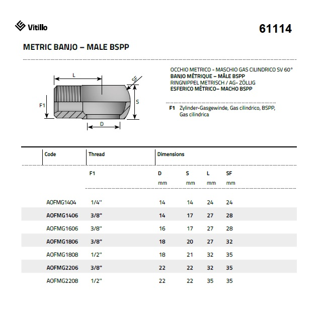 Banjo Metrický závit pro palcové šrouby, kužel 60°
