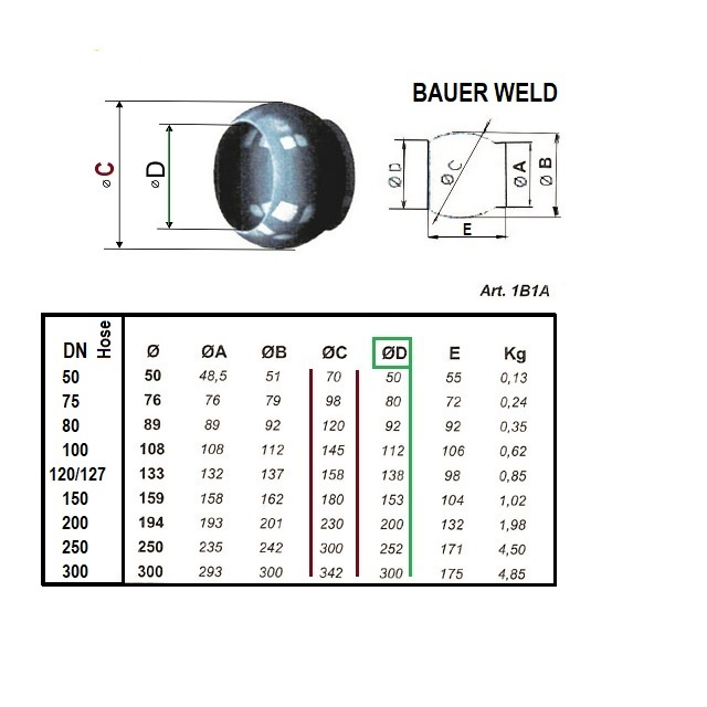Varianty050/050MB; Provozní tlak (bar) 10, DN (mm) 50, Hmotnost (kg) 0,8, Určeno na hadici [mm] 50, Výška