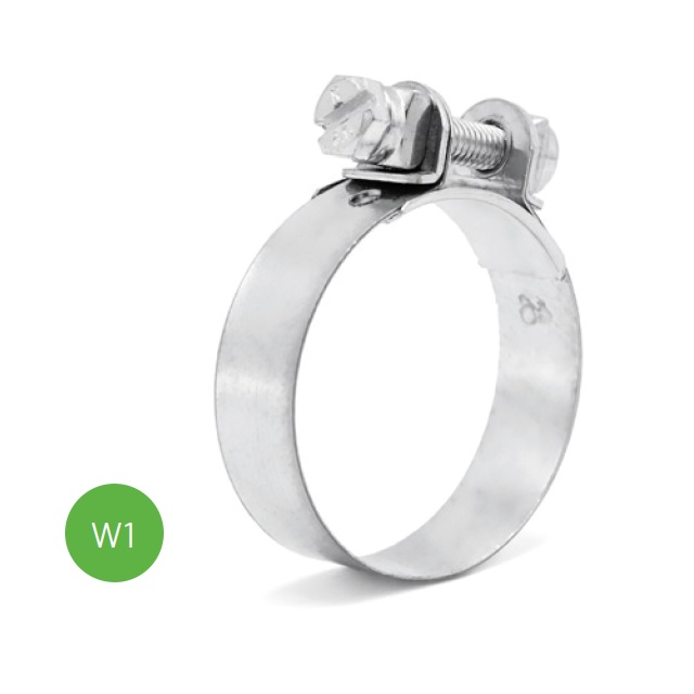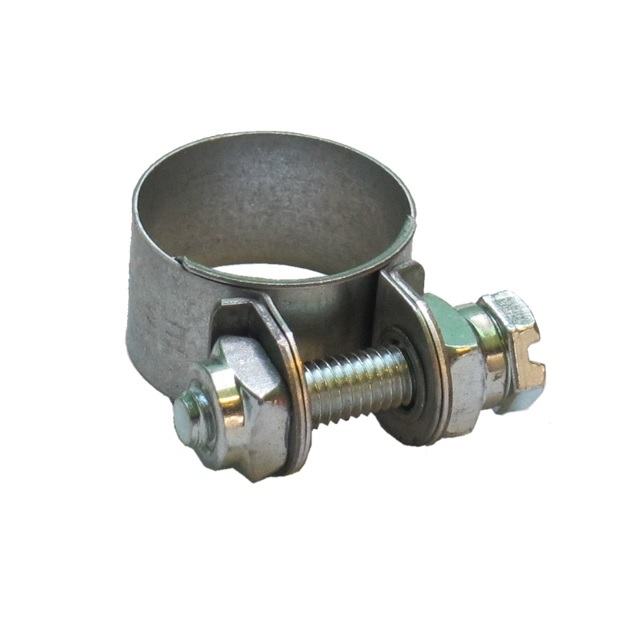 Spona pro brzdovou hadici. Doporučuje se zejména pro určitá odvětví, automobilní průmysl a kolejová vozidla, motocykly, výroba lékařských strojů.Spona s pevným průměrem byla navržena tak, aby zajistila co nejlepší uchycení hadice a spojky. Rozsah upnutí této svorky je minimální, což znamená, že průměr svorky před a po utažení je velmi podobný. Jakmile je svorka namontována a utažena, přesně odpovídá požadovanému průměru. Další výhodou je, že k dosažení požadovaného točivého momentu je zapotřebí velmi malého utažení. Konstrukce spony znamená, že ji lze použít ke spojování hadic s kovovými nebo plastovými spojkami.Materiál: Pás: Ocel DIN 1.0935, Šroub: 8.8 Ocel, Stříbro-bílá Cr3 Pozinkovaná, matice: Ocel 6, Stříbrná-Bílá Cr3 Pozinkované.