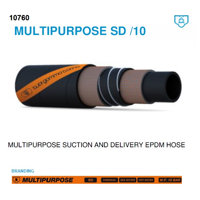 Černá, hladká, víceúčelová hadice z EPDM, odolná záporným i vysokým teplotám, mořské vodě a vlivům počasí.