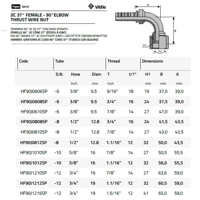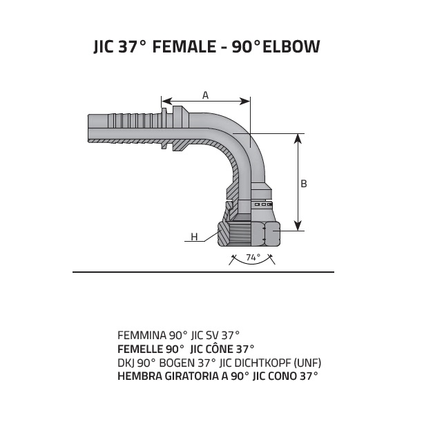 Lisovací nátrubek úhel 90° pro hydraulické hadice DKJ, americký závit UN(F), vnitřní kůžel 74° JIC.