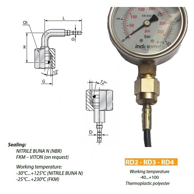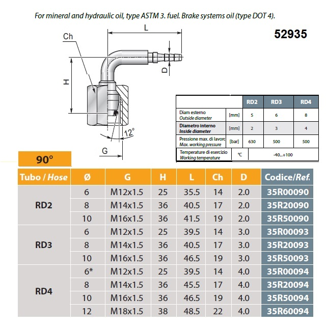 35R00090; Celková délka (mm) L=35,5, Provozní tlak (bar) 630, Vnitřní závit M12x1,5, DN (mm) 2, Trubka (mm) 6L, Hmotnost (kg) 0,02, Velikost [modul] RD2, Šestihran 14