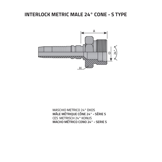DKOS CES- MALE, Interlock s vnějším závitem, kuž.24°.