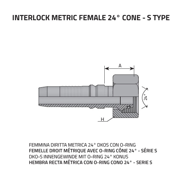 Lisovací armatura - Interlock pro hydraulické hadice DKOS 24° O-kroužek, metrický závit, těžká řada.