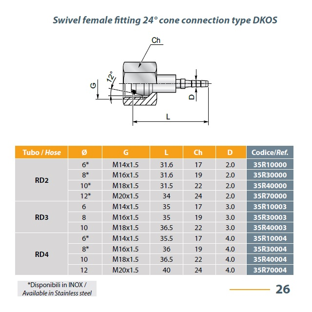 DKOS 90° FEMALE KUŽ. 24° - RD2 až 4 DKOS 24°