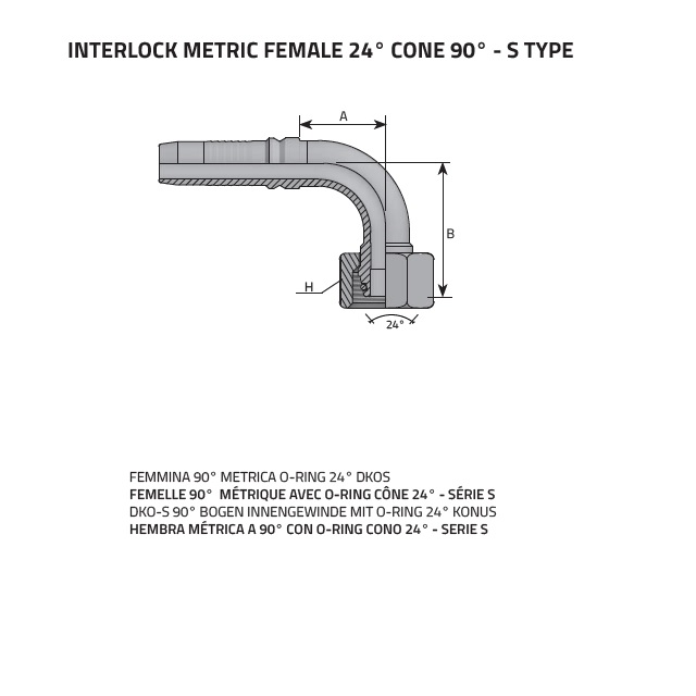 Lisovací armatura pro hydraulické hadice, Interlock, Vnější kužel 24°, O-kroužek, metrický závit, těžká řada.
