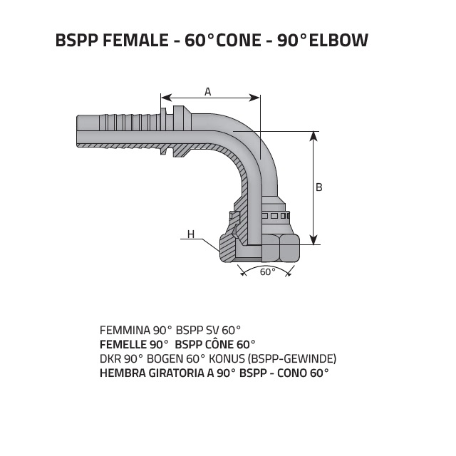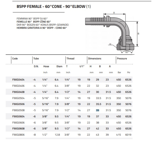 Lisovací nátrubek DKR úhel odbočení 90°; vnitřní palcový závit BSP, vnější kužel 60°.Pro výběr koncovky k patřičnému průměru hadice slouží údaj "Určeno na hadici [Inch]".